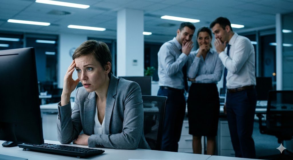 - Isolamento Social: O grupo "esquece" de convidar a vítima para almoços, a ignora em reuniões ou a deixa fisicamente isolada no escritório.